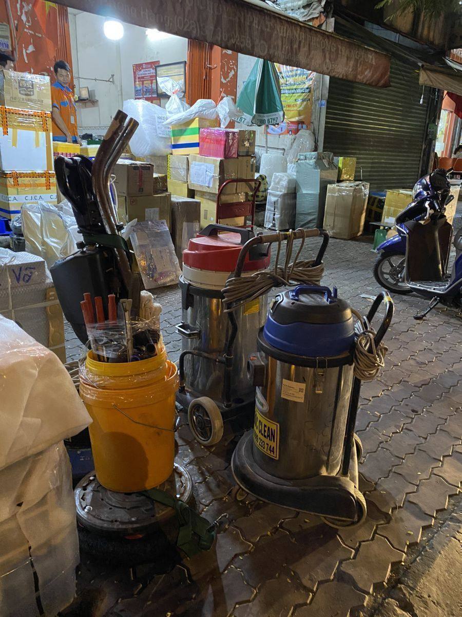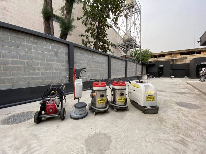 - Máy móc, thiết bị vệ sinh công nghiệp hiện đại: Máy hút bụi công nghiệp, máy chà sàn, máy phun rửa áp lực cao.